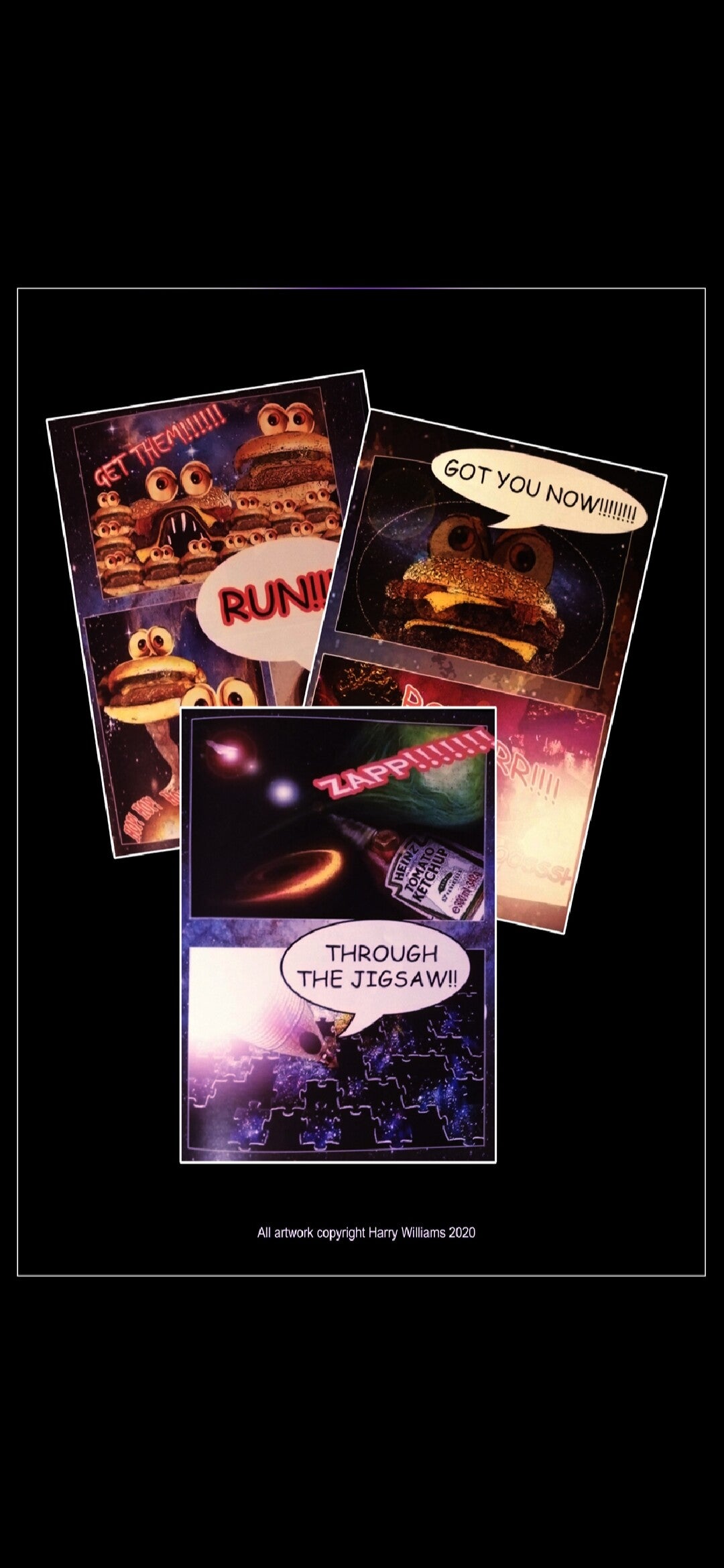 Taking the photographs I added a filter, text and original backgrounds.