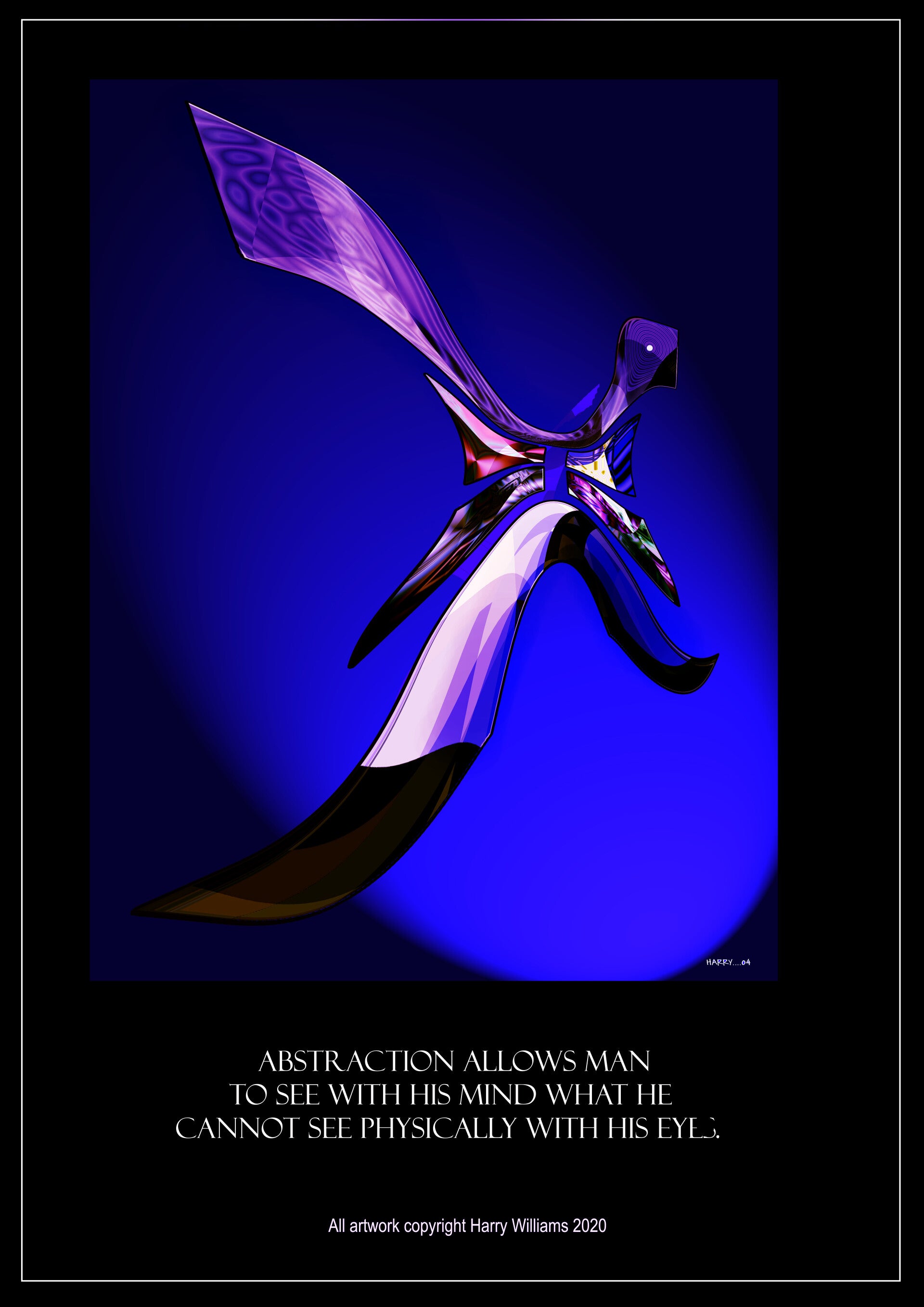 The quote underneath “Abstraction allows man to see with his mind what he cannot see physically with his eyes” captures the purpose of the artwork perfectly. It reminds the viewer that abstract art isn’t about recognising objects; it’s about experiencing emotion, movement, and possibility. The meaning isn’t fixed. The viewer completes the picture using their own imagination.