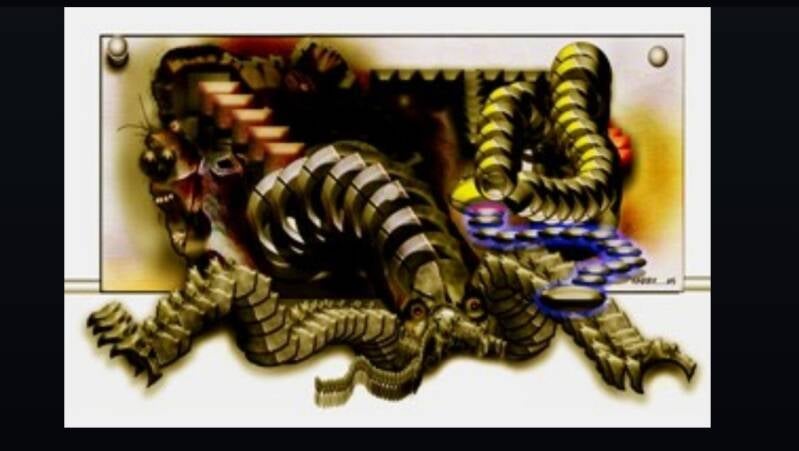 Its head is the worst part: a long, predatory skull hidden beneath overlapping ridges, each one curving forward like the segments of an insect’s exoskeleton. No eyes are visible, only the sense that it sees everything anyway. Its mouth, if it even has one, is lost beneath folds that look capable of peeling open when it feeds.