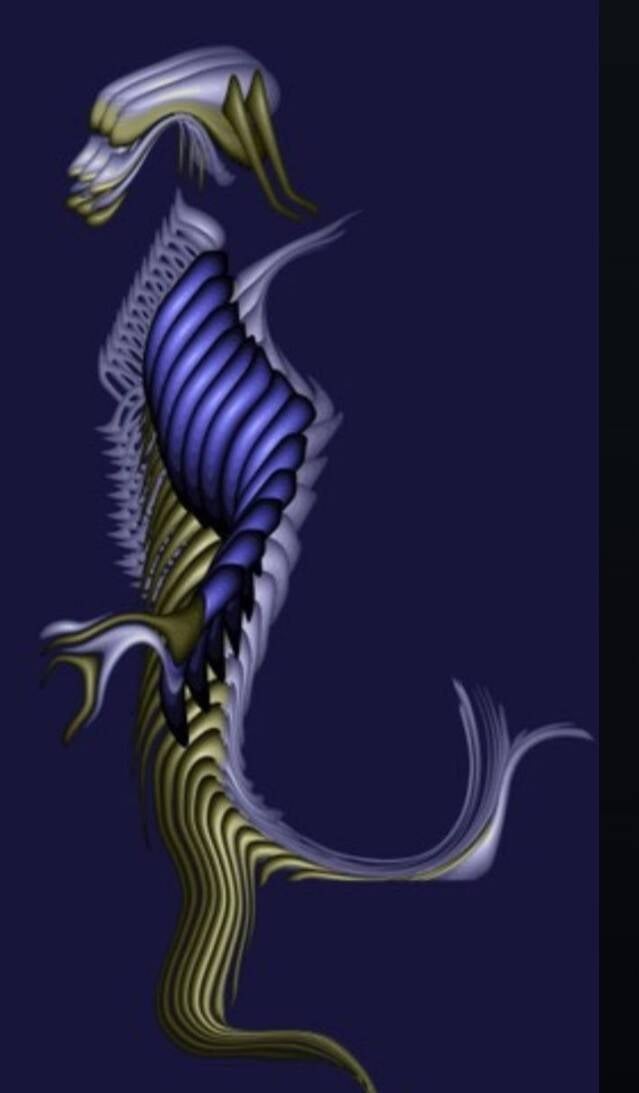 This piece takes an abstract shape and turns it into something that feels alive, almost like a creature caught in motion. The flowing purple and blue forms don’t try to copy anything from the real world. Instead, they invite the viewer to use imagination to decide what they see: a bird, a dancer, a futuristic figure, or something completely different.