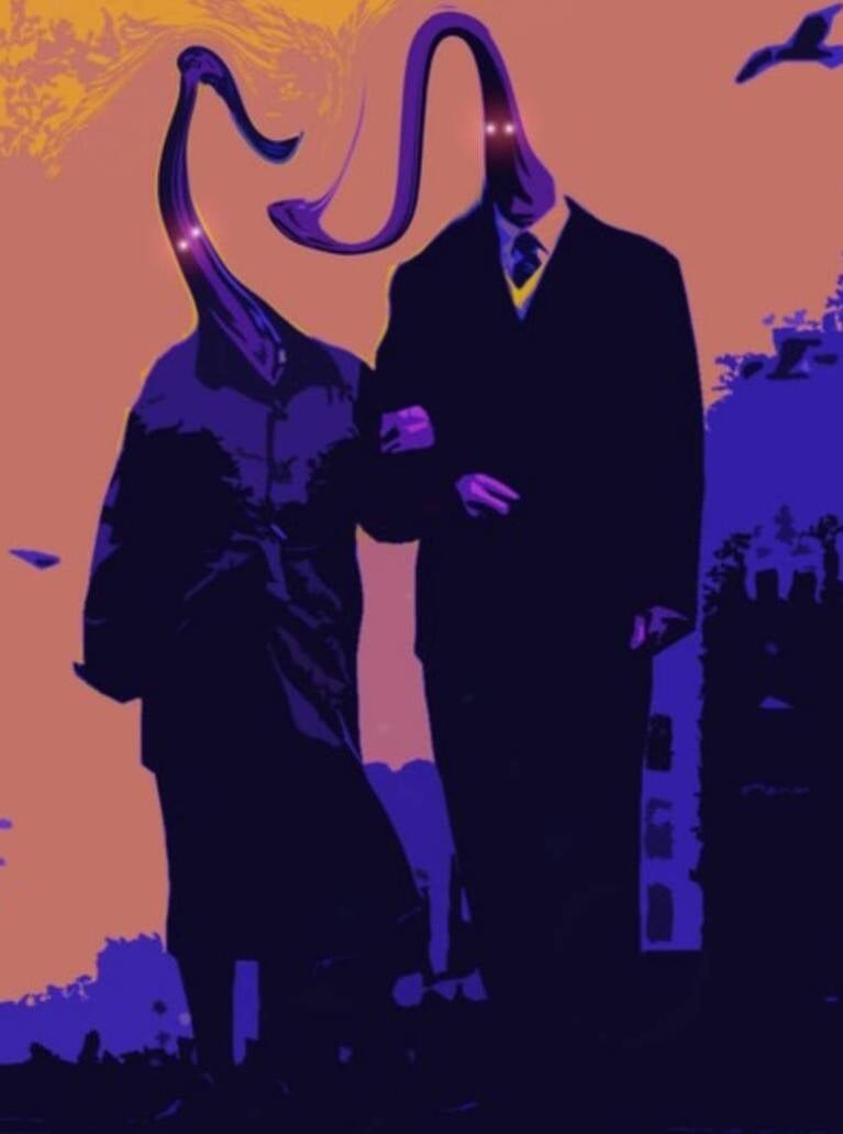 People walking alone at dusk sometimes saw a man and woman strolling arm-in-arm far ahead on the road. Their clothing old-fashioned. Their posture perfectly ordinary. But when the wind shifted, their heads stretched upward like ribbons caught in an updraft, long, bending silhouettes with faint, shimmering eyes hovering near the ends.